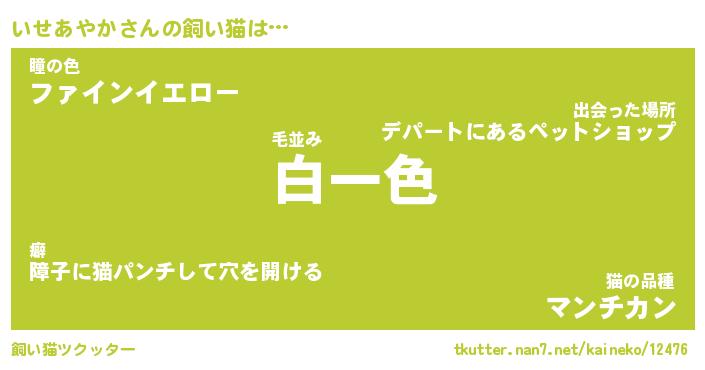 | ヒーロー風カッコイイあだ名 | 『スーパーイセアヤカ』『銀牙騎士イセ』 |