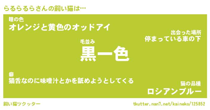 | ツイッター | らるらるらさんのツイッターID『kikurage_nyan』 |