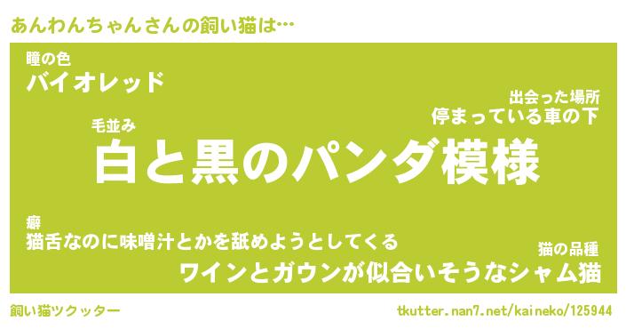 | ツイッター | あんわんちゃんさんのツイッターID『namakemono_nyan』 |