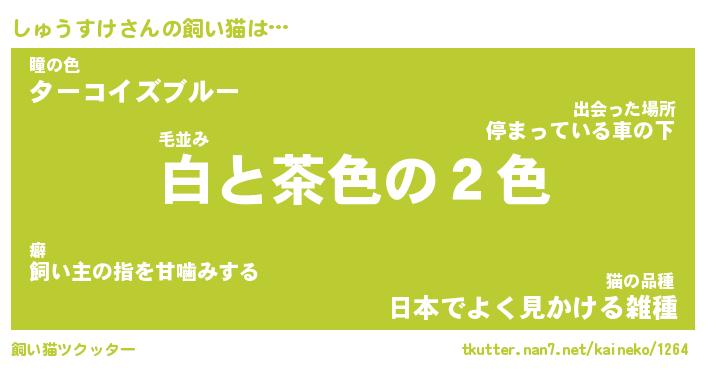 | ヘコむあだ名 | 『しゅにー』『なまこ酢』『しゅ太郎』 |