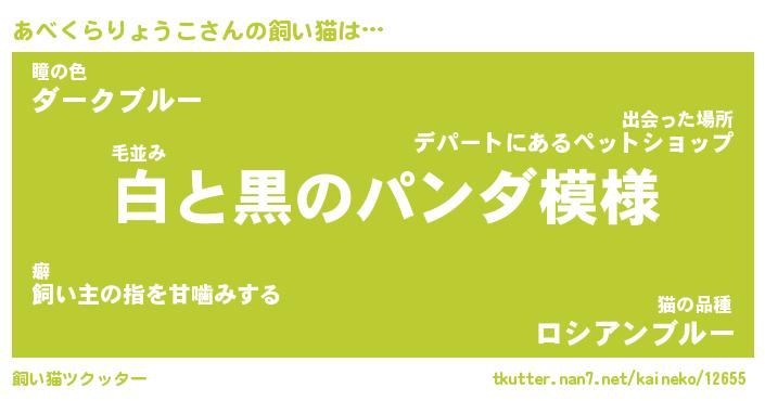 | ツイッター | あべくらりょうこさんのツイッターID『namakemono_nyan』 |