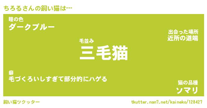 | 2回繰り返すあだ名 | 『ちろちろ』『ちちろろ』『おろおろ』 |