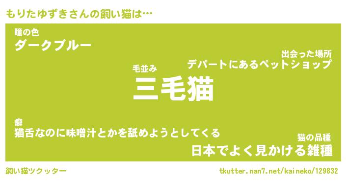 | ツイッター | もりたゆずきさんのツイッターID『dendenmushi_nyan』 |