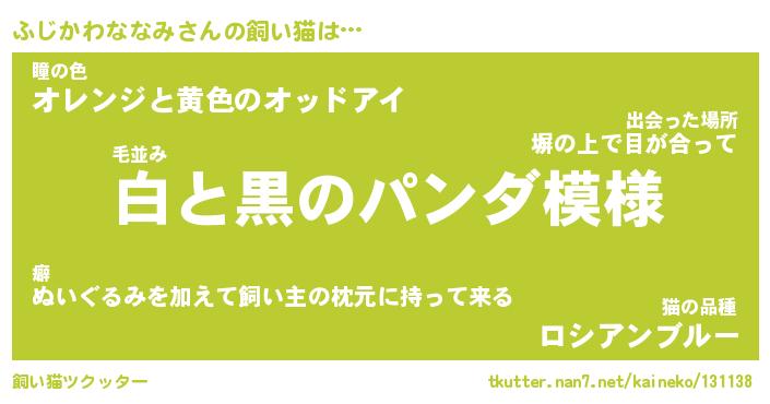 | ツイッター | ふじかわななみさんのツイッターID『dendenmushi_idle』 |