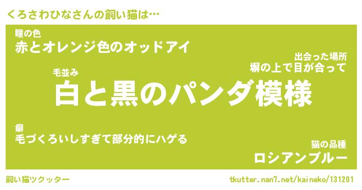 | ツイッター | くろさわひなさんのツイッターID『namakemono_nyan』 |