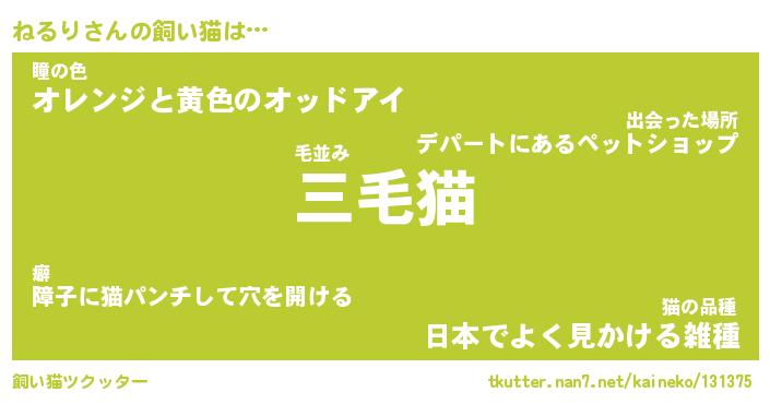 | 2回繰り返すあだ名 | 『ねるねる』『ねねるる』『ぬれぬれ』 |
