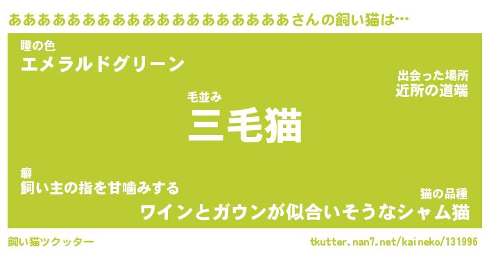 パンダ模様のシャム猫、、(略 …「めい」 | 6月18日 03:09 |
