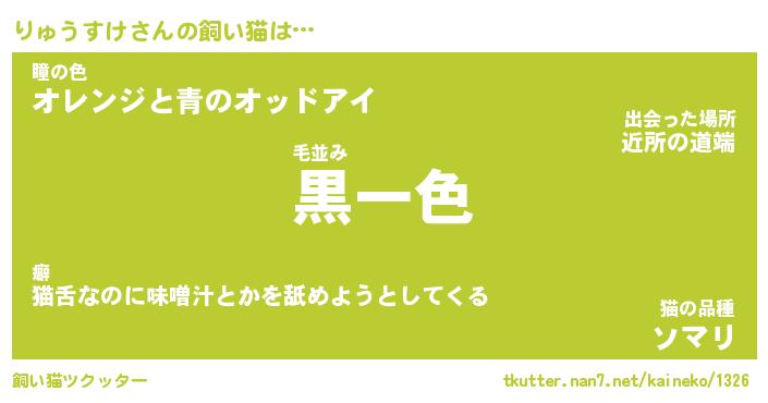 | 猫の名前『りゅうすけにゃん』性別『♂』 |