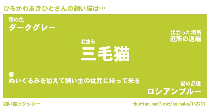 | 猫 | 猫の名前『ひろひろにゃん』性別『♀』 |