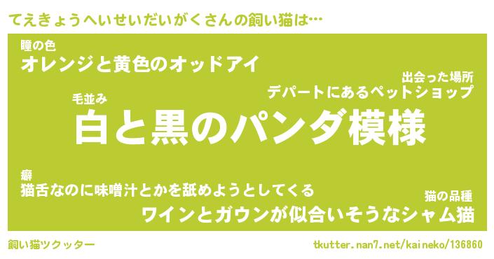 | パンダ模様のシャム猫、、(略 …「めい」 | 6月18日 03:09 |