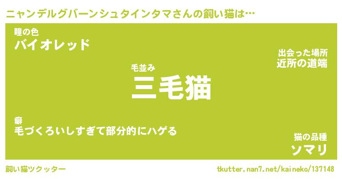 | 肩書あだ名 | 『ニャンデルグバーンシュタインタマ店長』 |