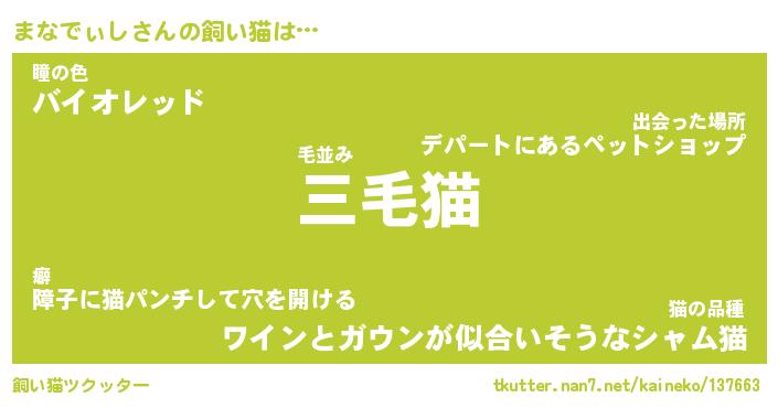 | パンダ模様のシャム猫、、(略 …「めい」 | 6月18日 03:09 |