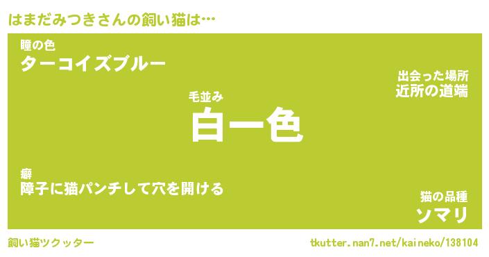 はまだみつきさんの飼い猫は… 毛並み『白一色』瞳の色『ターコイズブルー』猫の品種『ソマリ』 ツクッター #飼い猫ツクッター http://tkutter.nan7.net/kaineko/138104/