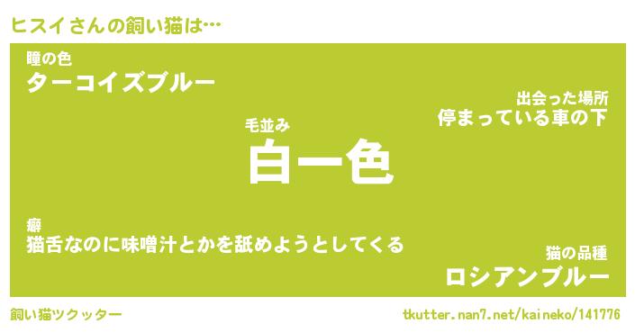 ヒスイさんの飼い猫は… 毛並み『白一色』瞳の色『ターコイズブルー』猫の品種『ロシアンブルー』 ツクッター #飼い猫ツクッター http://tkutter.nan7.net/kaineko/141776/
