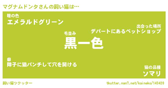 マグナムドンタさんの飼い猫は… 毛並み『黒一色』瞳の色『エメラルドグリーン』猫の品種『ソマリ』 ツクッター #飼い猫ツクッター http://tkutter.nan7.net/kaineko/143420/