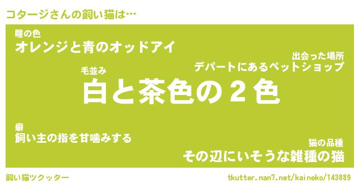 | ファンタジー風あだ名 | 『コタフェル』『エターナルコタージー』 |