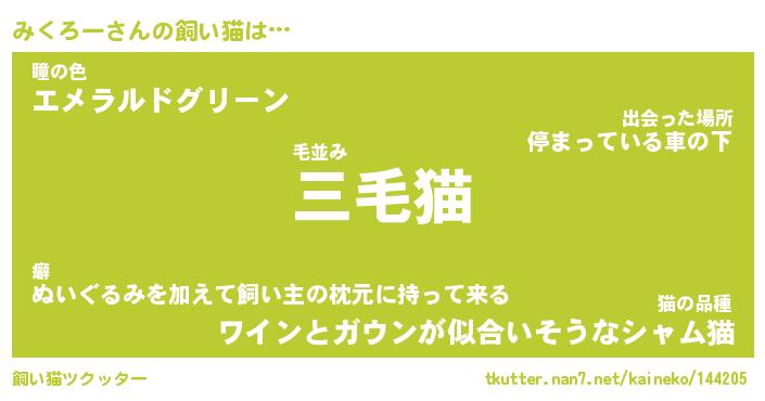 | パンダ模様のシャム猫、、(略 …「めい」 | 6月18日 03:09 |