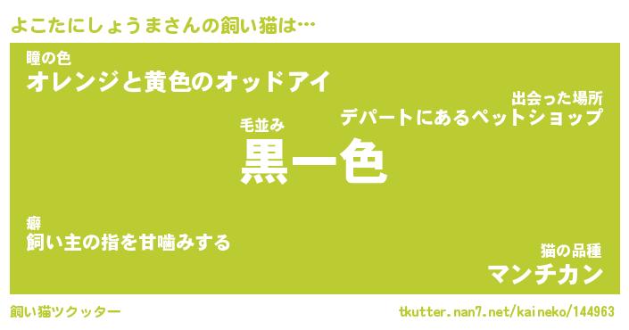 | 猫 | 猫の名前『よこにゃん』性別『♀(めす)』 |