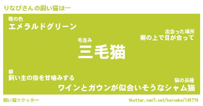 | パンダ模様のシャム猫、、(略 …「めい」 | 6月18日 03:09 |