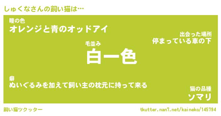 | 2回繰り返すあだ名 | 『しゅしゅ』『ししゅゅ』『にたにた』 |