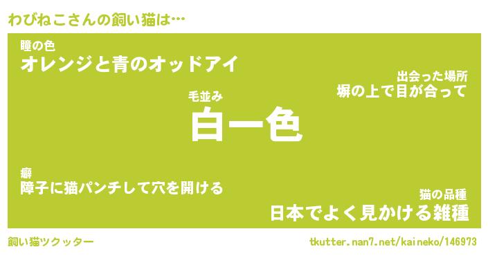 | 欧米人風あだ名 | 『マイケルわびねこ』『ウサインわびねこ』 |
