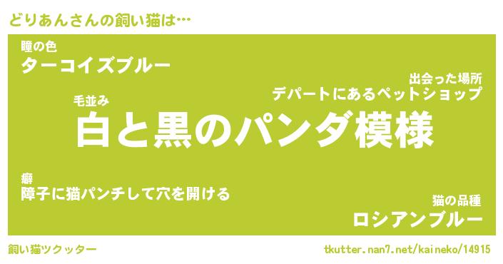 | パンダ模様のシャム猫、、(略 …「めい」 | 6月18日 03:09 |