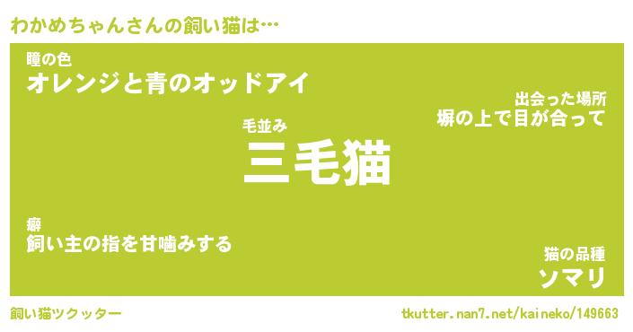 | 猫 | 猫の名前『わかわかにゃん』性別『雄』 |