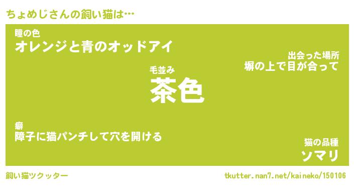 | 欧米人風あだ名 | 『マイケルちょめじ』『ウサインちょめじ』 |