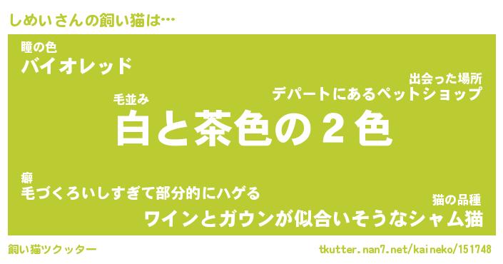 | パンダ模様のシャム猫、、(略 …「めい」 | 6月18日 03:09 |