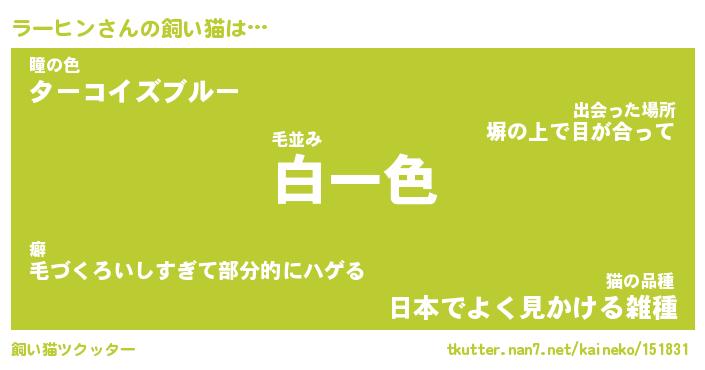 | パンダ模様のシャム猫、、(略 …「めい」 | 6月18日 03:09 |