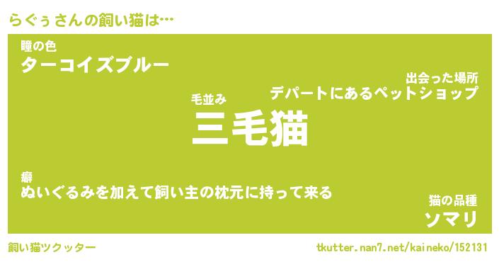 | パンダ模様のシャム猫、、(略 …「めい」 | 6月18日 03:09 |