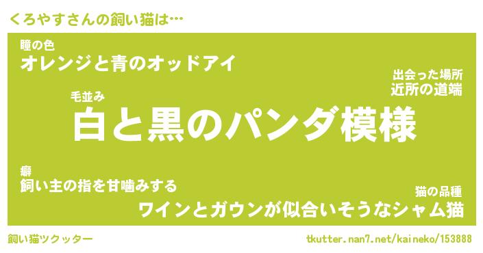 | パンダ模様のシャム猫、、(略 …「めい」 | 6月18日 03:09 |
