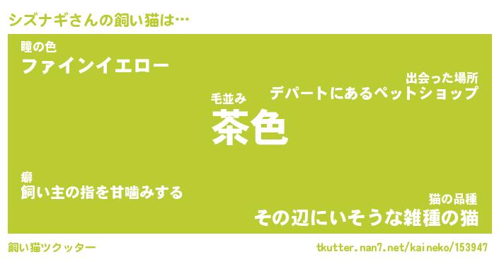 | 意味不明あだ名 | 『ペロリンシズナギ』『永久保存シズナギ』 |