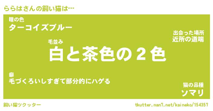 ららはさんの飼い猫は… 毛並み『白と茶色の2色』瞳の色『ターコイズブルー』猫の品種『ソマリ』 ツクッター #飼い猫ツクッター http://tkutter.nan7.net/kaineko/154357/
