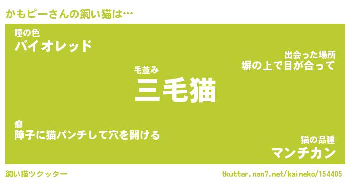 | 欧米人風あだ名 | 『マイケルかもピー』『ウサインかもピー』 |