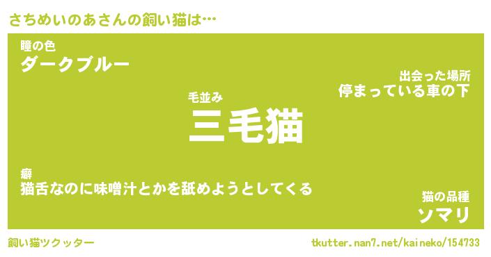 | 猫 | 猫の名前『さちさちにゃん』性別『♀』 |
