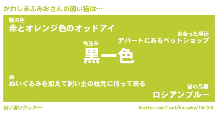 | 男性向けラノベタイトル風あだ名 | 『かわしまふみおの憂鬱』 |