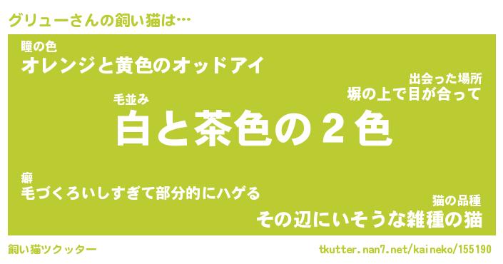| ヘコむあだ名 | 『グリふぇ~』『酢こんぶ』『グリお』 |