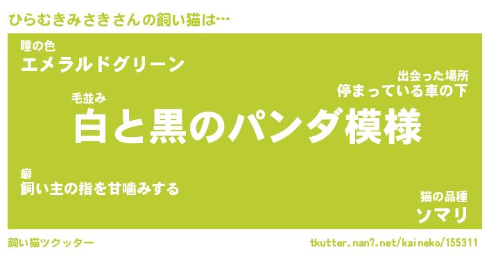 | パンダ模様のシャム猫、、(略 …「めい」 | 6月18日 03:09 |