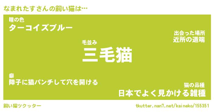| 2回繰り返すあだ名 | 『なまなま』『ななまま』『ぬめぬめ』 |