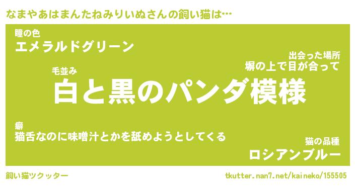 | パンダ模様のシャム猫、、(略 …「めい」 | 6月18日 03:09 |