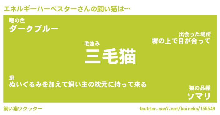 | ツイッター | エネルギーハーベスターさんのツイッターID『katatsumuri_nyan』 |