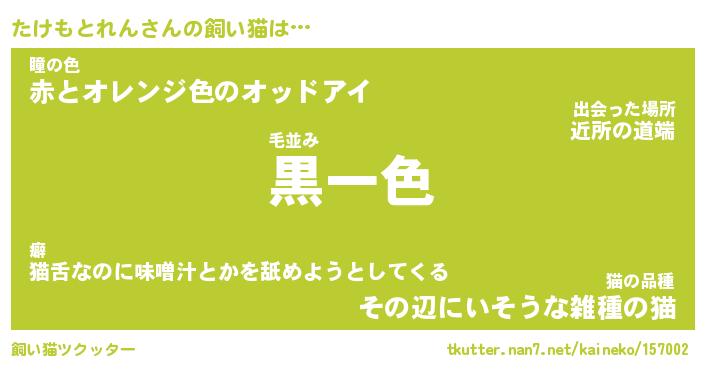 | 猫 | 猫の名前『たけにゃん』性別『メス』 |