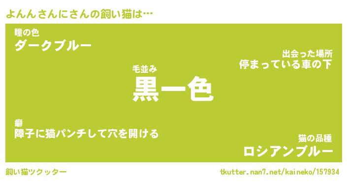 よんんさんにさんの飼い猫は… 毛並み『黒一色』瞳の色『ダークブルー』猫の品種『ロシアンブルー』 ツクッター #飼い猫ツクッター http://tkutter.nan7.net/kaineko/157934/