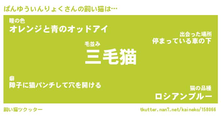 | 猫 | 猫の名前『ばんばんにゃん』性別『♂』 |