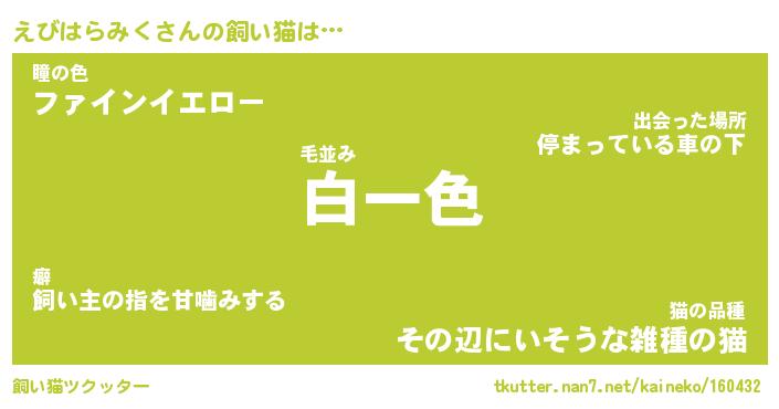 | 胡散臭い通販商品みたいなあだ名 | 『必ず成功するブレスレット…その名も「えびはらみく」』 |