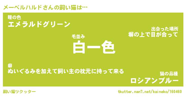 | 男性向けラノベタイトル風あだ名 | 『メーベルハルドの憂鬱』 |