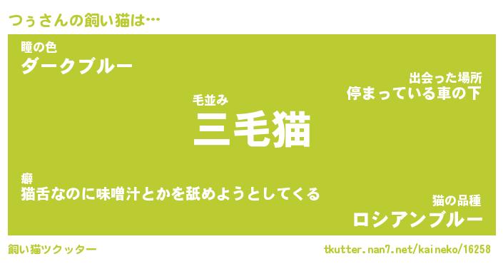 | ポケモン風あだ名 | 『ツゥチュウ』『ツゥダネ』『ヒツゥ』 |