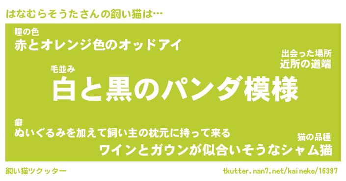 | パンダ模様のシャム猫、、(略 …「めい」 | 6月18日 03:09 |