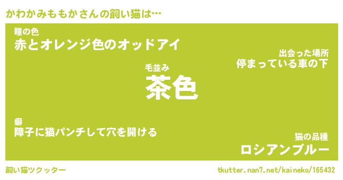 | ヘコむあだ名 | 『かわっふぃ~』『牛乳』『かわお』 |
